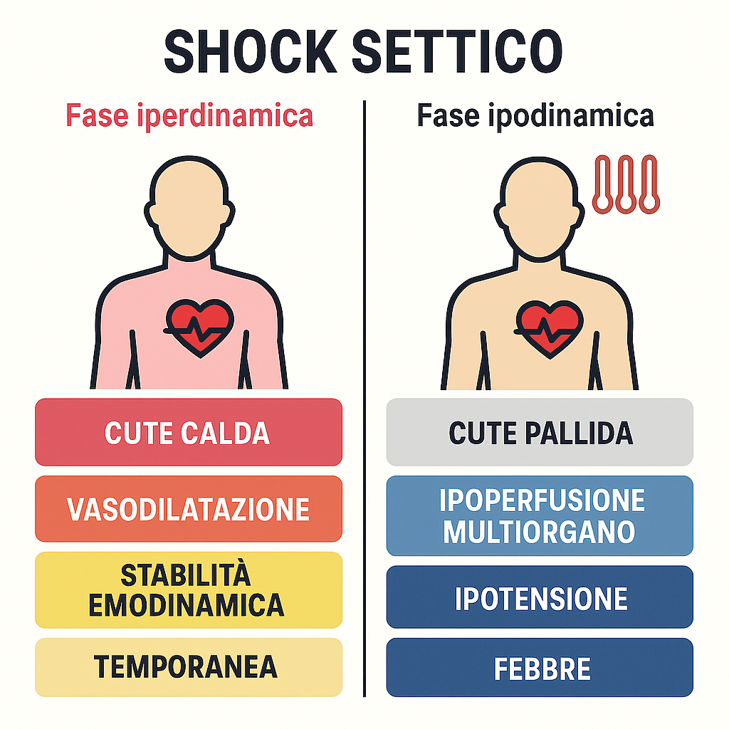 Clinicamente, lo shock settico si manifesta attraverso due fasi distinte: