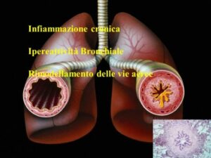 - infiammazione delle vie aeree periferiche e ipersecrezione di muco;