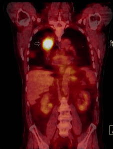 - Fluorodesossiglucosio F-18 (FDG): questo è di gran lunga il radiofarmaco più importante in oncologia. L’FDG è un analogo del glucosio che viene captato avidamente dalle cellule a alto metabolismo energetico, come le cellule tumorali maligne. La sua concentrazione all’interno delle cellule è un marker dell’attività metabolica e della proliferazione cellulare. La PET/TC con F-18 FDG è un pilastro nella diagnosi, stadiazione, valutazione della risposta alla terapia e nel follow-up di un’ampissima varietà di neoplasie.