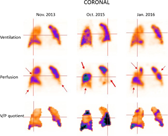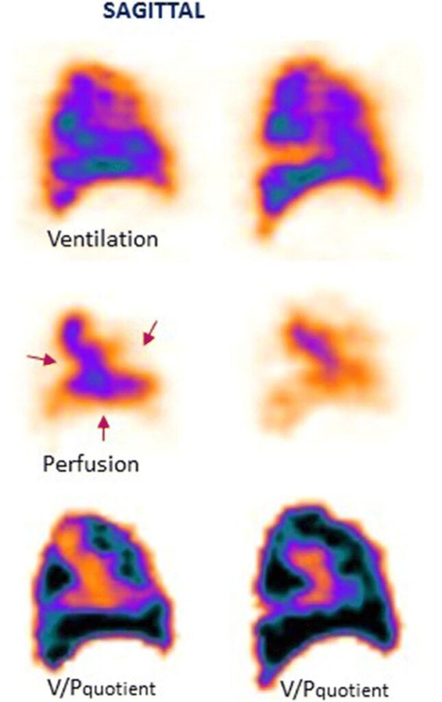 Nei pazienti con ipertensione polmonare cronica, la scintigrafia viene utilizzata per valutare l’efficacia dei trattamenti chirurgici (endoarterectomia) o percutanei (angioplastica polmonare a palloncino – BPA). Il miglioramento della perfusione segmentale correla con il calo delle resistenze vascolari polmonari e con il miglioramento della capacità funzionale del paziente.20