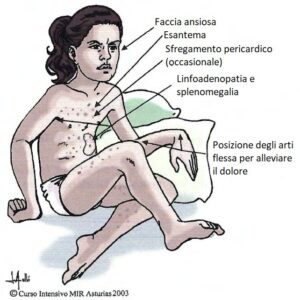 | Scarsi prodromi e pochi sintomi generali | Noduli subcutanei |