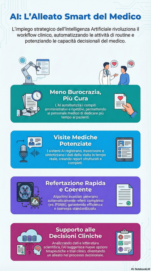L’impiego strategico dell’AI ottimizza molteplici fasi del lavoro medico, liberando risorse preziose: