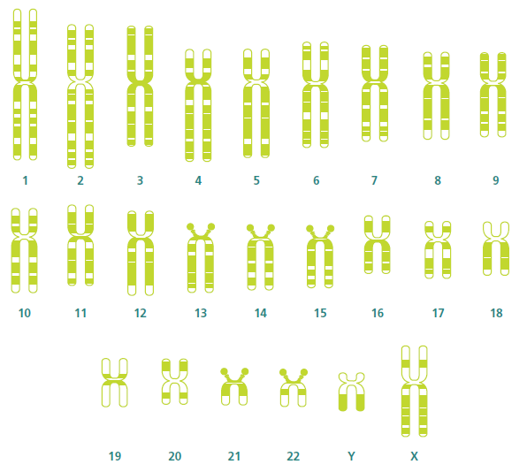 Il materiale genetico umano è organizzato in cromosomi, strutture complesse situate all’interno del nucleo cellulare.