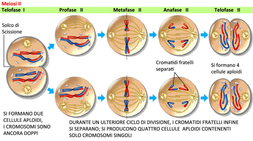 Il processo si svolge attraverso Profase II, Metafase II, Anafase II e Telofase II. L’evento chiave è l’Anafase II, durante la quale i cromatidi fratelli di ogni cromosoma si separano e migrano ai poli opposti.