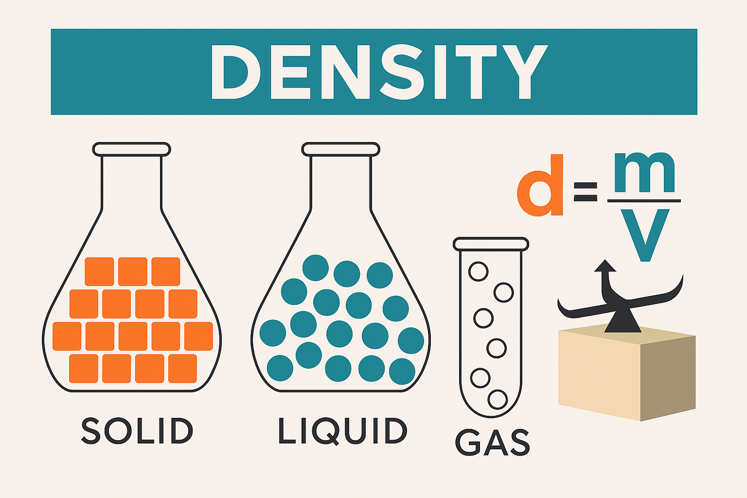 - densità assoluta (d): è definita come il rapporto tra la massa del corpo e il volume che esso occupa: