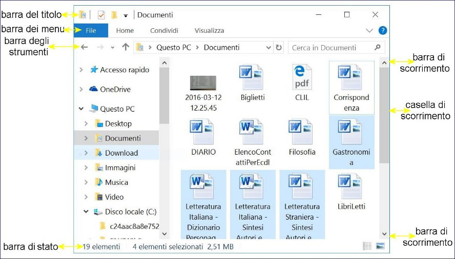 | Barra dei Menu | Posizionata sotto la barra del titolo, è riconoscibile da voci come File, Visualizza, ecc. Un clic su queste voci apre un menu a tendina che contiene una serie di comandi per eseguire azioni specifiche. |