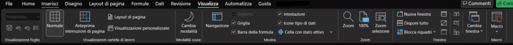 La Barra Multifunzione, conosciuta anche come “Ribbon” o “Nastro“, è l’elemento centrale dell’interfaccia utente di Excel. Introdotta per sostituire i menu e le barre degli strumenti delle versioni precedenti, è stata progettata per rendere i comandi più visibili e facilmente individuabili, raggruppandoli in modo logico per facilitare il flusso di lavoro dell’utente.