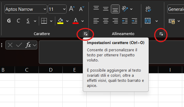 Un esempio emblematico è la finestra di dialogo Impostazioni carattere. Sebbene molti comandi di formattazione siano disponibili direttamente sulla barra multifunzione, questa finestra riunisce in un unico pannello, organizzato in più schede (Numero, Allineamento, Carattere, Bordo, ecc.), tutte le opzioni correlate alla formattazione di una cella, offrendo un controllo completo e centralizzato.