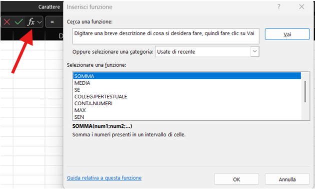 A1). In secondo luogo, agisce come un potente strumento di navigazione: digitando un riferimento di cella o il nome di un intervallo nominato e premendo Invio, ci si sposta istantaneamente in quella posizione nel foglio; - pulsanti funzionali: accanto alla casella nome si trovano i pulsanti per confermare o annullare un inserimento. Il più importante è il pulsante Inserisci Funzione (