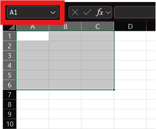 - casella nome: questo riquadro a sinistra ha una duplice funzione. Primariamente, visualizza il riferimento della cella attiva (es.