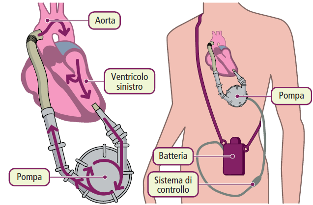 Il contropulsatore aortico (IABP) è un supporto temporaneo che riduce il postcarico e aumenta la perfusione coronarica. I dispositivi di assistenza ventricolare (VAD) sono invece pompe meccaniche a lungo termine utilizzate come20: