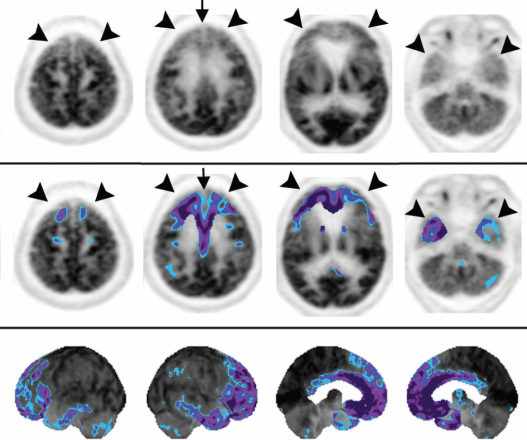 - atrofia cerebrale: una significativa riduzione del volume cerebrale, con conseguente allargamento dei solchi, può essere erroneamente interpretata dai software di mappatura statistica (SPM) come un’area di ipometabolismo corticale. È quindi cruciale correlare sempre le mappe statistiche con le immagini PET native per distinguere un vero ipometabolismo da un artefatto dovuto all’atrofia;