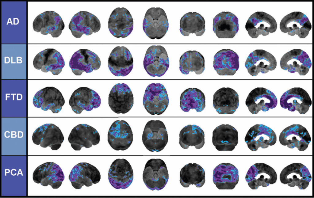 - Atrofia Cerebrale Posteriore (PCA): considerata una variante atipica dell’AD, la PCA si presenta con un pattern di ipometabolismo parietotemporale e occipitale posteriore, ma con il coinvolgimento aggiuntivo delle cortecce associative visive laterali, che spiega i deficit visivi complessi tipici di questa sindrome.